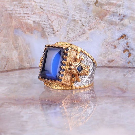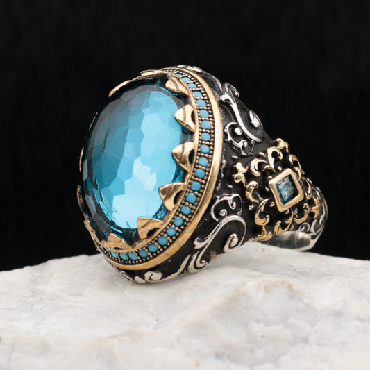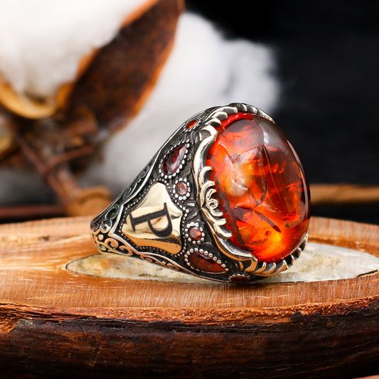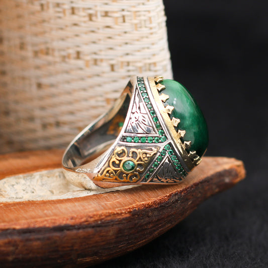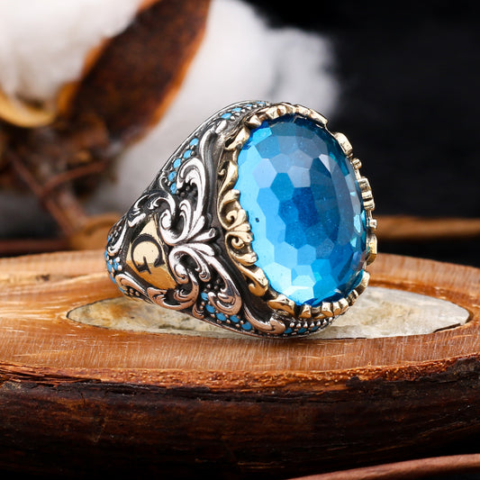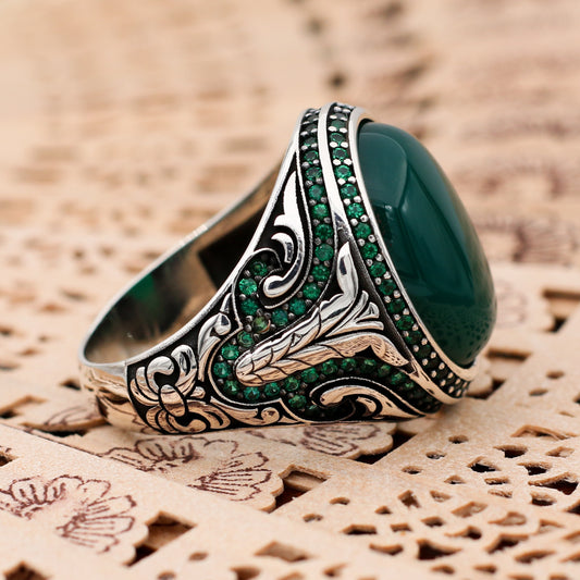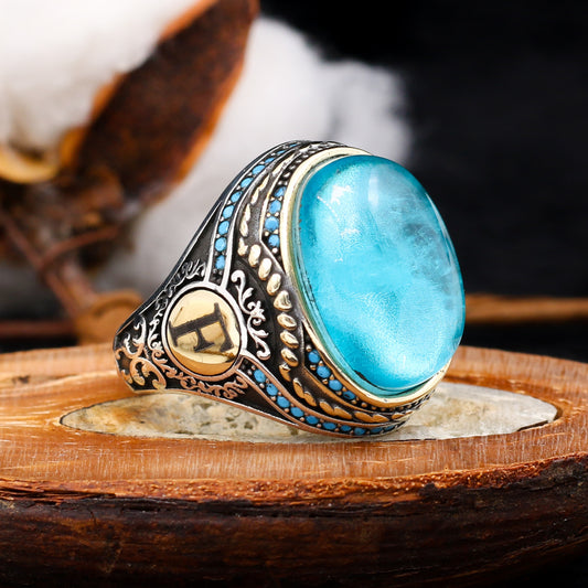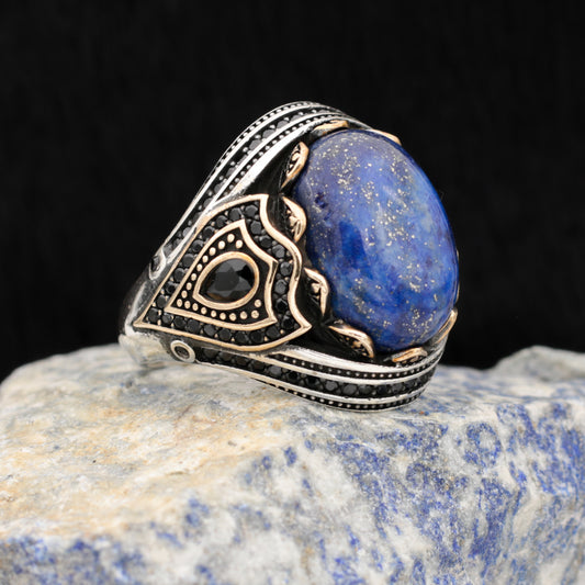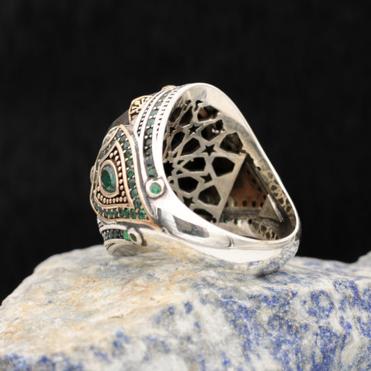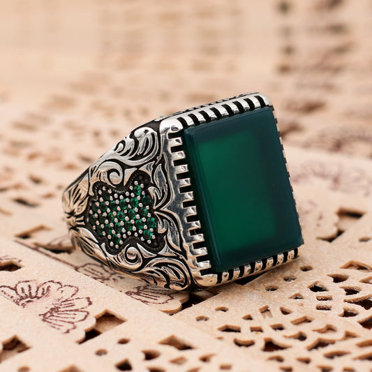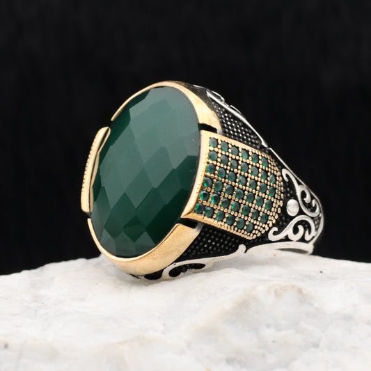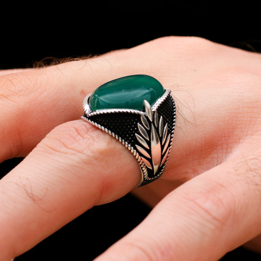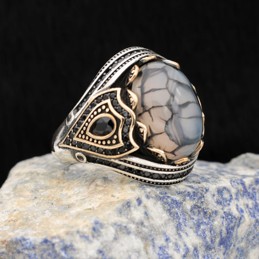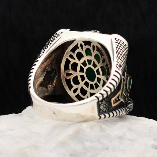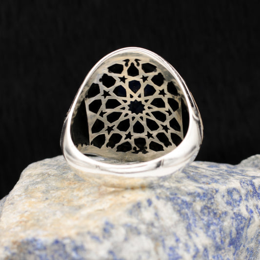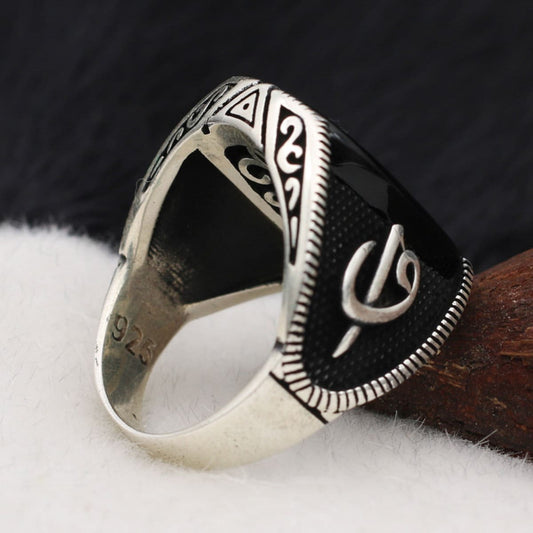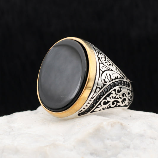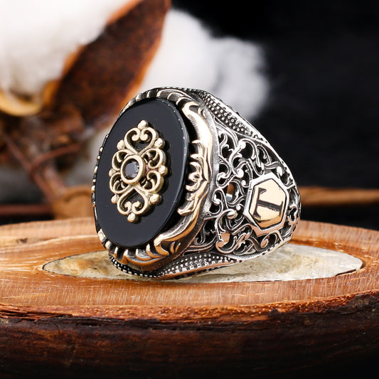 Elif&Vav Mens Silver Ring, Onyx Stone