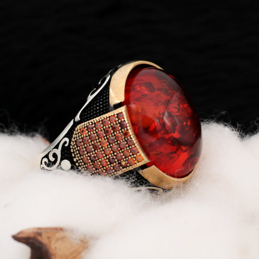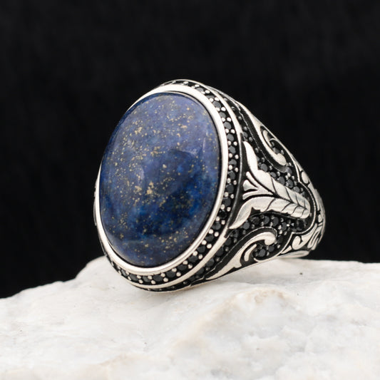 Black Onyx Stone Men's Ring, 925K Sterling Silver